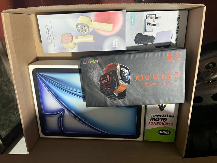 Pedí la caja misteriosa de tecnología y quedé súper satisfecho. En la foto pueden ver exactamente los productos que me llegaron: todo vino bien sellado, en excelente estado y tal cual lo prometen. Me sorprendió la calidad y la utilidad de cada cosa. Definitivamente una compra recomendada.